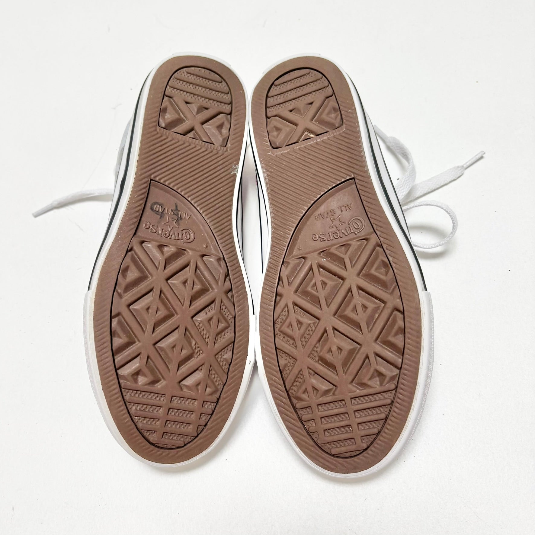 Grey lace-up sneakers with pink trim and galaxy pattern.