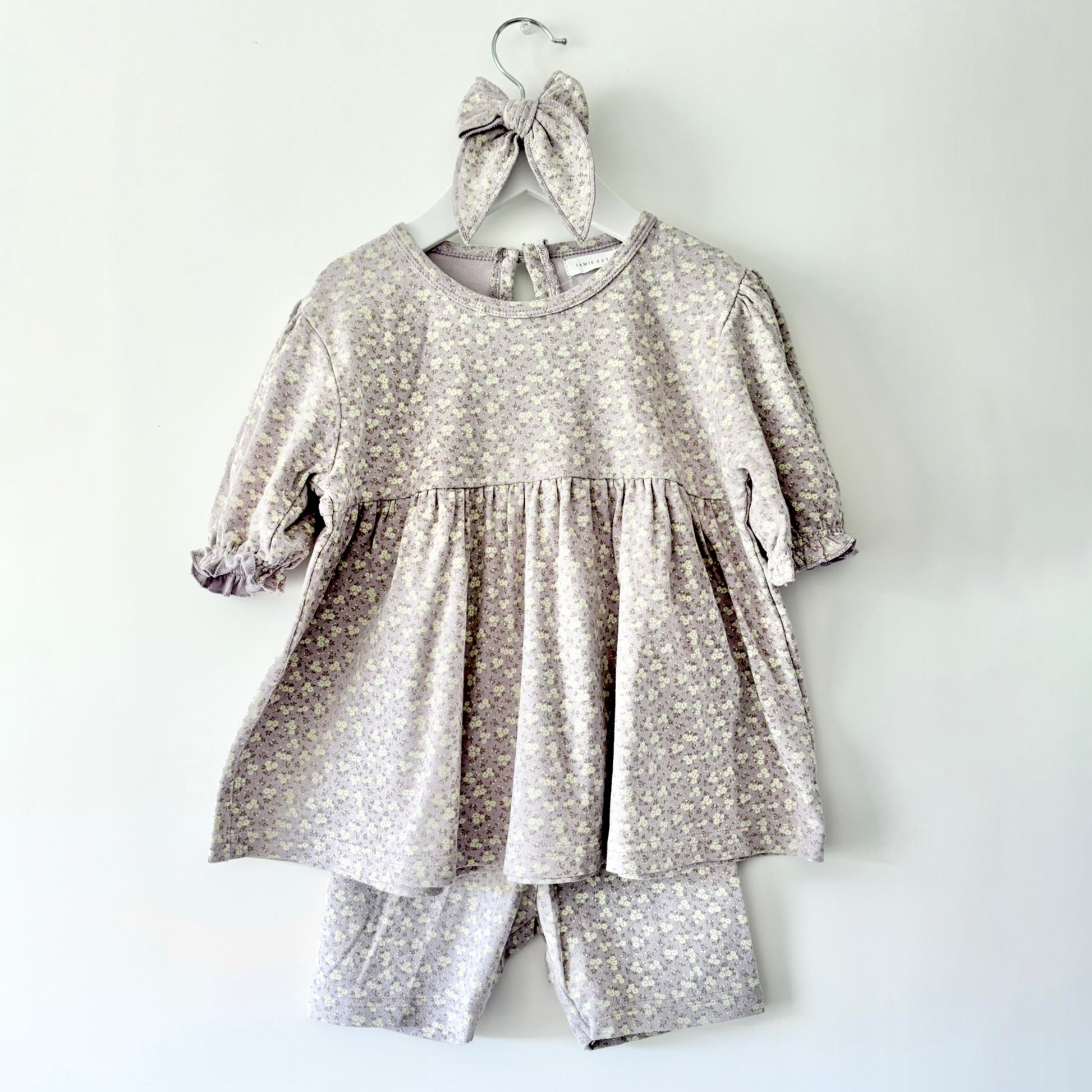 3-piece set in lilac "Rosalie Fields" floral pattern.
